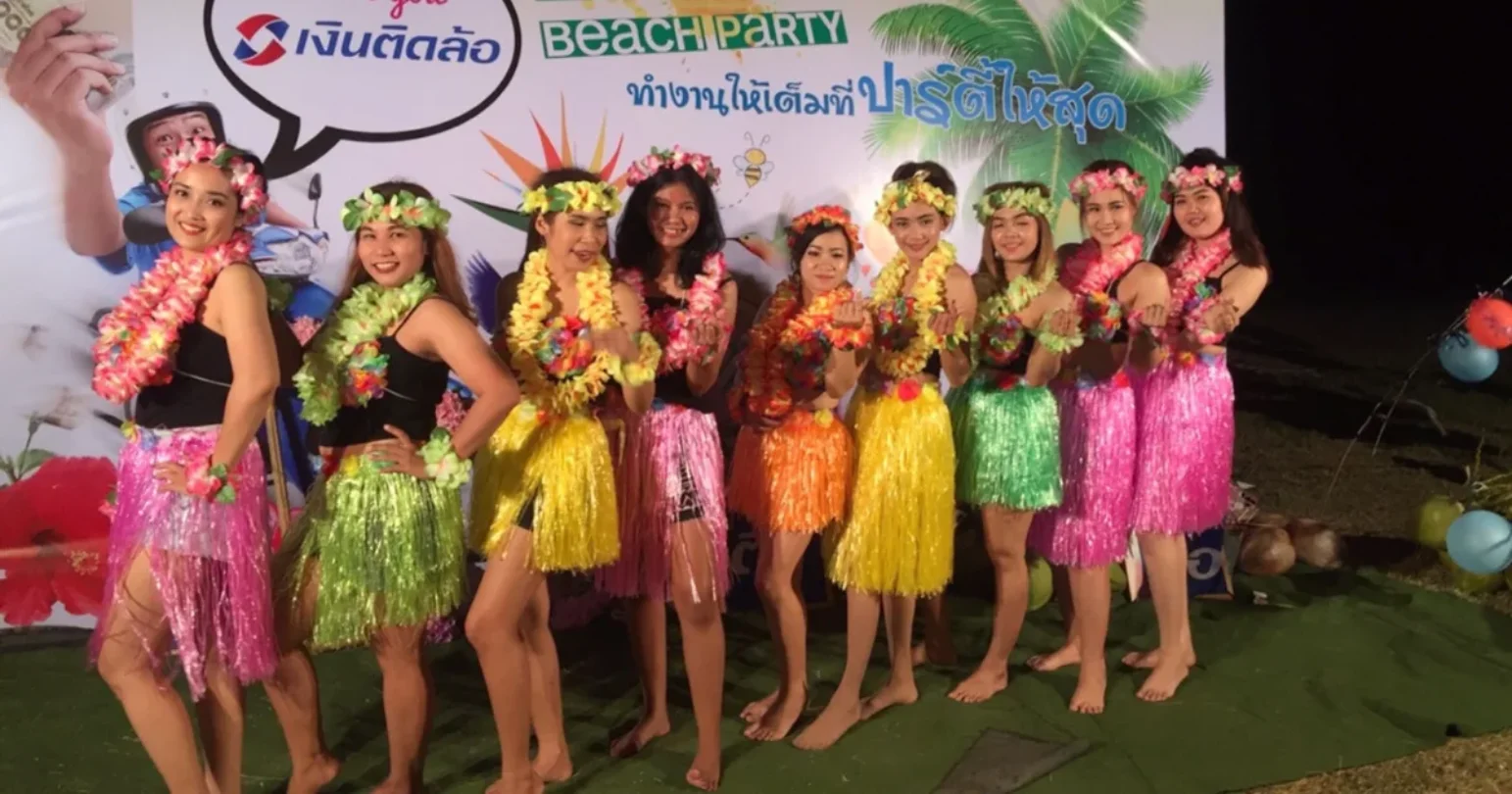 2. เชิญชวนให้ผู้ร่วมงานแต่งกายตามธีมงาน เช่น สวมใส่รองเท้าแตะ เสื้อหรือกางเกงหรือกระโปรงลายดอกไม้ กระโปรงเชือกฟาง แว่นตาเก๋ๆ มีพร็อพประกอบเป็นพวงมาลัยดอกไม้คล้องคอหรือมงกุฎดอกไม้สำหรับถ่ายรูปปังๆ